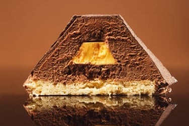 Umedecer o disco de pão de ló e adicionar o caravella fluifour gianduji e os morangos, adicionar mais um disco de pão de ló e adicionar novamente o caravella fluifour gianduji. Colocar outro disco de pão de ló e finalizar.