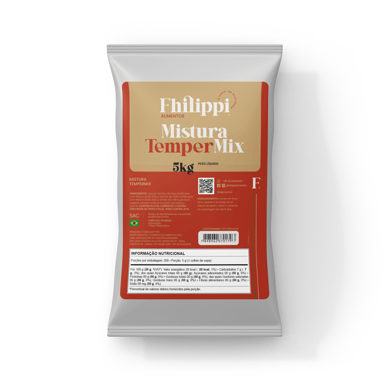 O TemperMix é perfeito para salgados fritos e assados, folhados e semifolhados, tortas, empanadas. Tudo fica com aroma e sabor únicos. Já temperada com especiarias desidratadas, essa mistura só precisa do acréscimo de água, deixando toda receita mais fácil e prática.